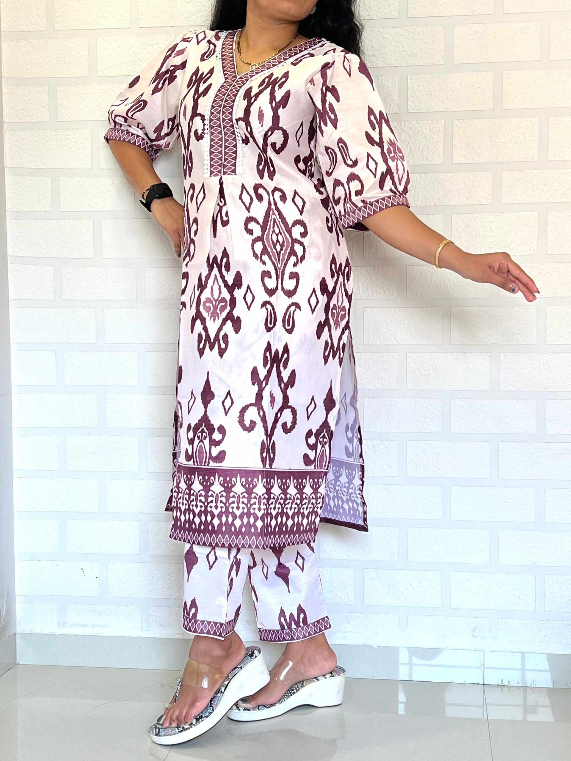 JKWH 998 Pure Fine Cotton Febric Embroidery Work A-line Kurti Set With Pocket