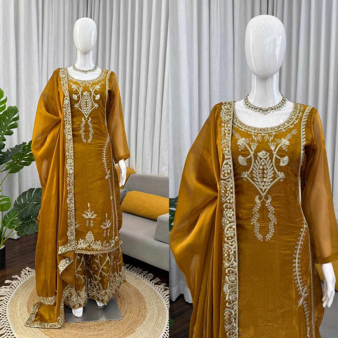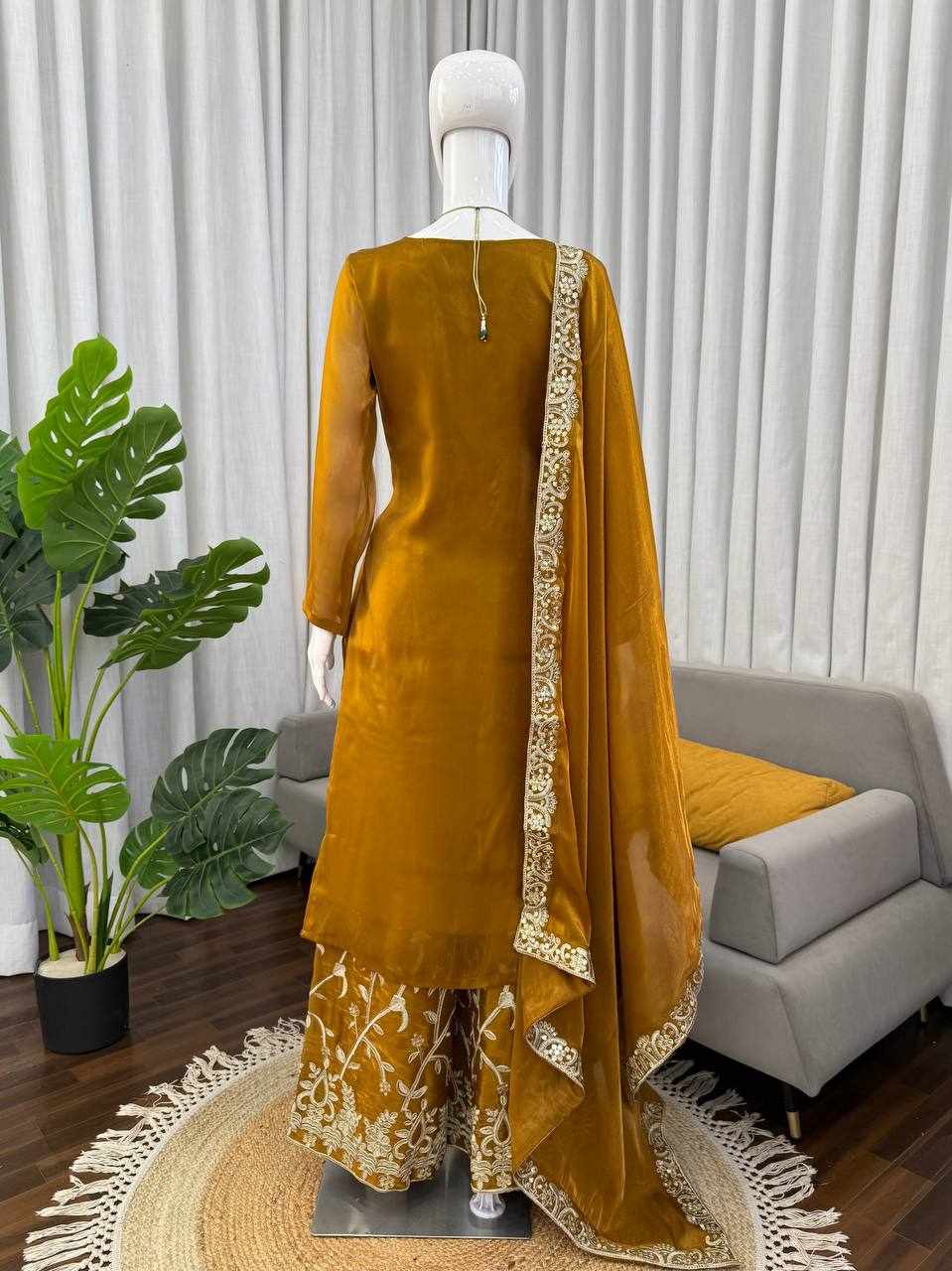 Perfect for weddings, festive occasions, parties, and family functions. The matching embroidery on top, plazzo, and dupatta creates a coordinated, luxurious look.