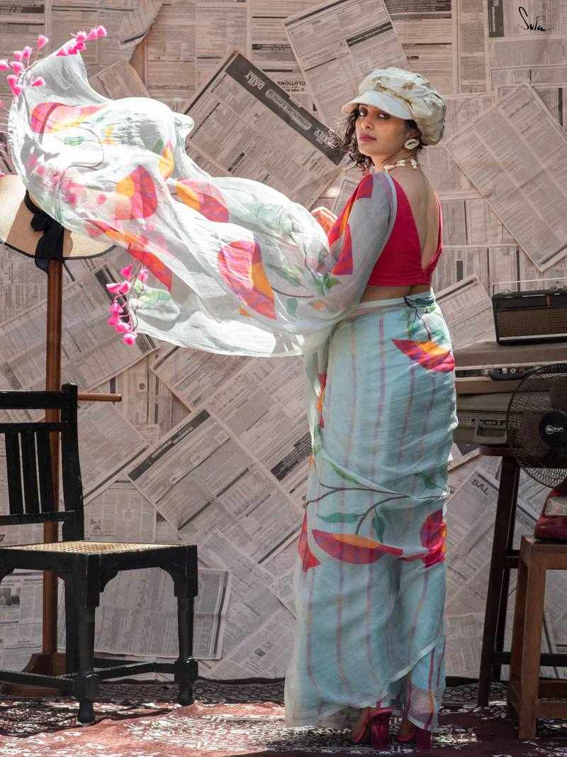 Saree Fabric: Premium Linen Cotton with beautiful digital print and elegant handmade cotton tassels