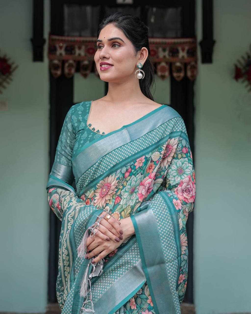 Saree Fabric: Silver Weaving Patta Linen Cotton