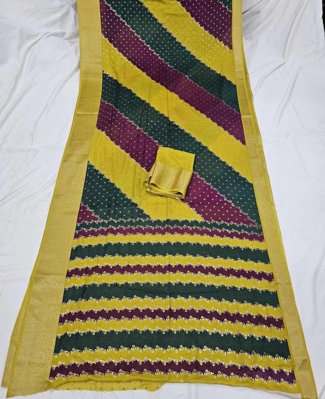 Saree Fabric :march mellow jecard border with foil printed sarees design