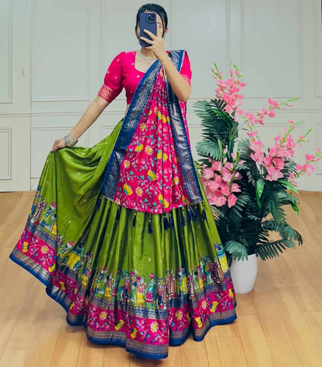 Reviews for PIYU 10-2 Silk Chaniya Choli With Viving Foil Mehndi Colour Lehnga