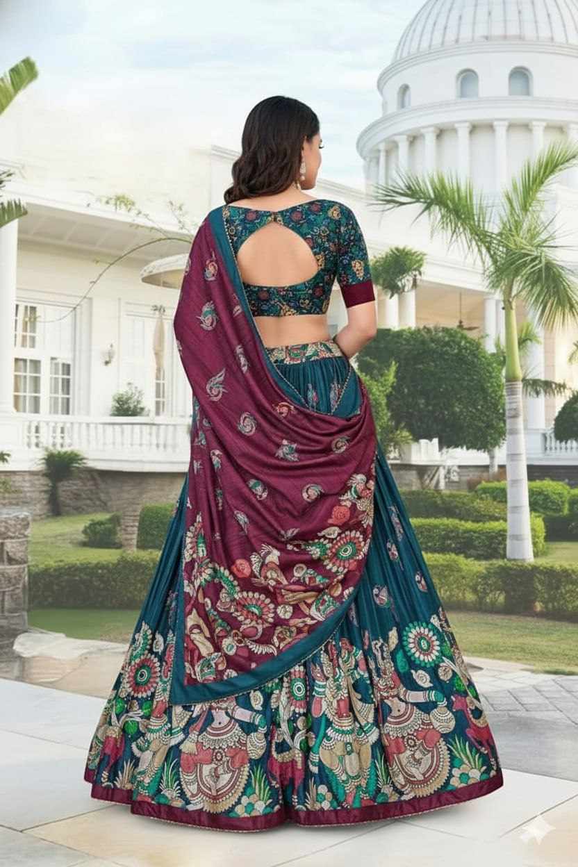 Home / PIYU 16-2 Silk Digital print Rama Colour Lehnga