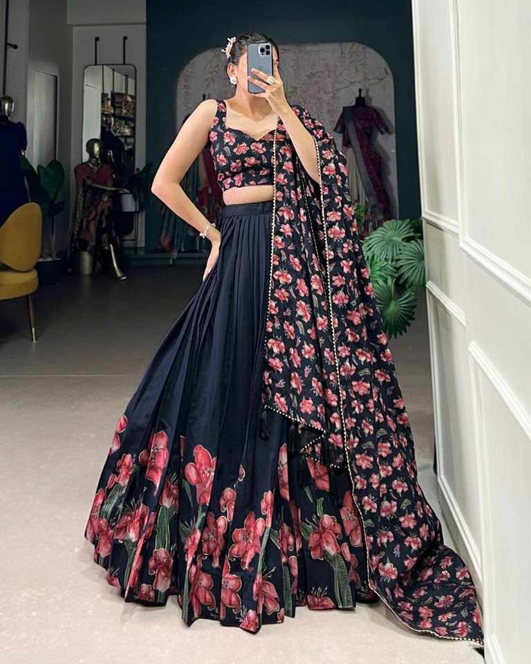 | Name : | PIYU 27-1 Silk Digital print Black Lehnga |
