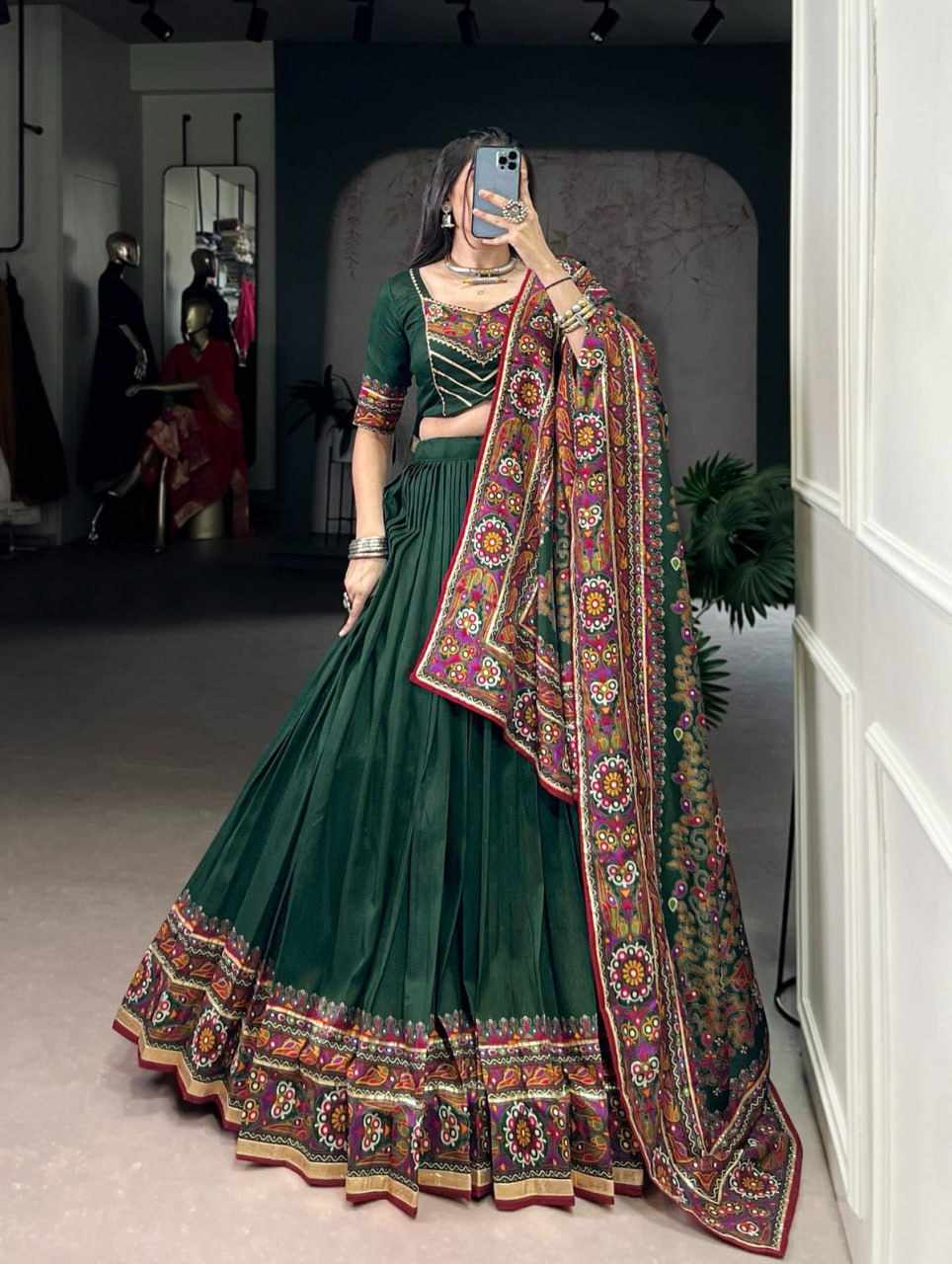 | Name : | PIYU 29-1 Silk Chaniya Choli With Viving Foil Green Lehnga |