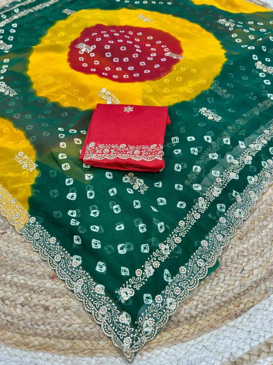 Home / PIYU P1051 LEHERIYA BANDHANI-3 Green Saree