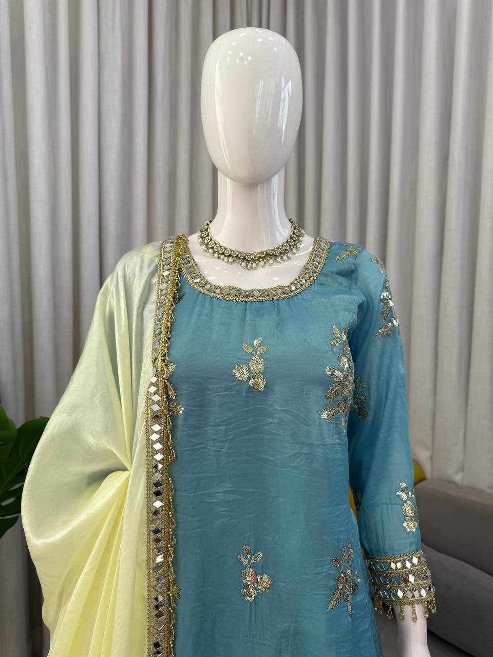 Work: Thread Embroidery with Sequence Work, Real Mirror Work & Readymade Lace Border